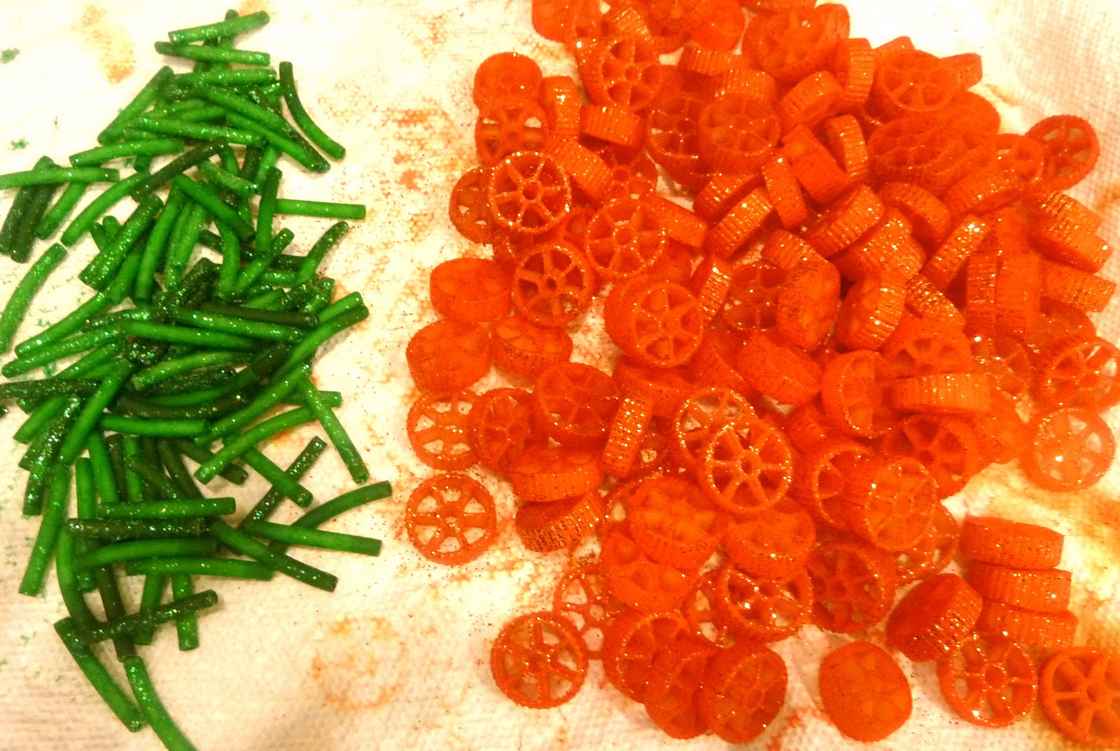 *Adding glitter while the pasta is wet will help it stick*